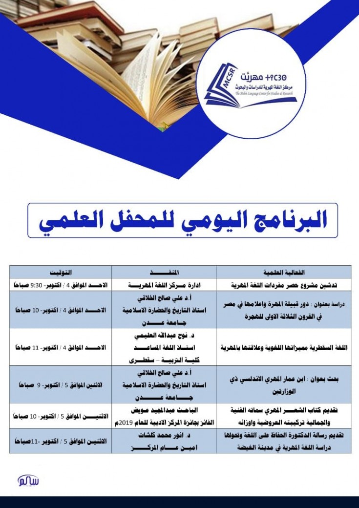 On the occasion of Mahri Language Day – the second of October, we are pleased to invite you to attend the activities of this most important day, which include the following: