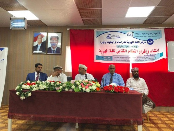 تحت شعار “إنشاء وإقرار النظام الكتابي للغة المهرية”، وبرعاية الشيخ راجح سعيد باكريت محافظ محافظة المهرة ، اقام مركز اللغة المهرية للدراسات والبحوث ورشة علمية، شارك فيها العديد من الأكاديميين المتخصصين، من داخل المحافظة وخارجها، وبحضور رسمي وشعبي من الباحثين والمهتمين باللغة المهرية، والذين توافدوا إلى عاصمة محافظة المهرة – الغيضة، وقد استمرت الورشة على مدى يومين 19 – 20من يونيو 2019م، حيث تركزت الورشة على ثلاث محاور، ونوقش من خلالها عدد من الأوراق والمقترحات المقدمة من قبل المشاركين.