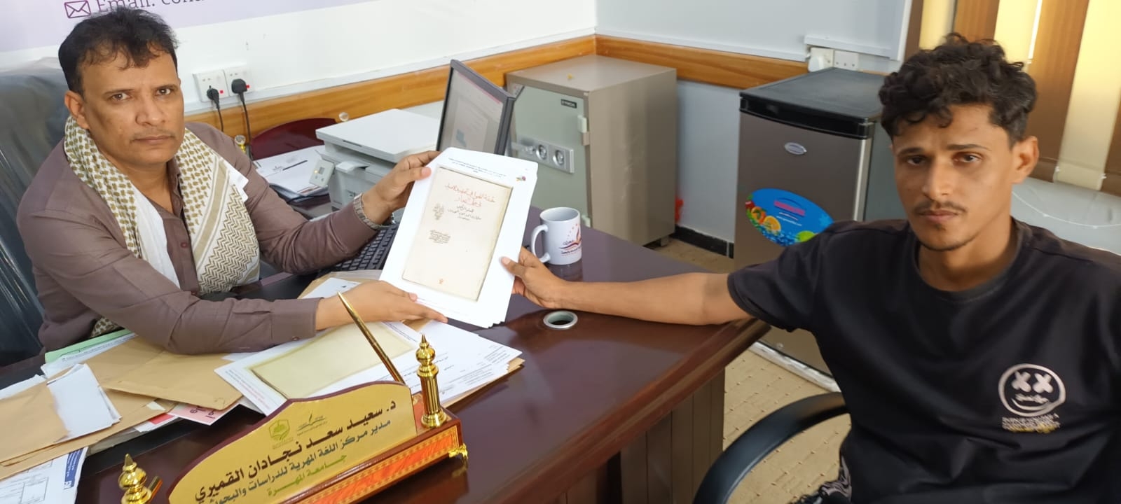 وأعرب مدير مركز اللغة المهرية عن عظيم امتنانه وشكره للباحث الشاب على اهداءاته القيمة للمركز والتي تتضمن عددًا من الوثائق التاريخية والخرائط والمخطوطات القديمة وصور للشخصيات والأعلام المهرية السقطرية.