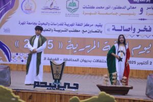 أقام مركز اللغة المهرية للدراسات والبحوث، اليوم الاثنين، فعاليات يوم اللغة المهرية 2025م، الذي يصادف الثاني من أكتوبر من كل عام، وذلك بإقامة حفل خطابي وتكريمي تحت شعار “فخر وأصالة”، برعاية معالي الأستاذ محمد علي ياسر محافظ محافظة المهرة، ومعالي الدكتور أنور محمد كلشات رئيس جامعة المهرة.