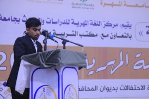 وكان نائب مدير مركز اللغة المهرية الأستاذ محمد عبدالعزيز كلشات ألقى كلمة رحّب فيها بالحضور، مثمنا دعم السلطة المحلية وجامعة المهرة لمشاريع المركز وبرامجه الهادفة إلى الحفاظ على اللغة المهرية وتطوير دراساتها.