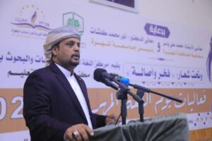 من جانبه، ألقى رئيس جامعة المهرة الدكتور أنور محمد كلشات كلمة أكد فيها أن الاحتفاء بيوم اللغة المهرية يجسد الاعتزاز بالهوية ويعزز الانتماء الثقافي، داعيا الجميع إلى الإسهام في الحفاظ على هذا الإرث التاريخي واللغوي العريق. وعبر عن شكره وتقديره للسلطة المحلية ممثلة بالمحافظ والأمين العام، ولمركز اللغة المهرية ومكتب التربية على اهتمامهم ودعمهم المستمر، مشيرا إلى ما تبذله الجامعة من جهود في غرس اللغة المهرية في الوجدان الأكاديمي وتوثيقها علميا وبحثيا.