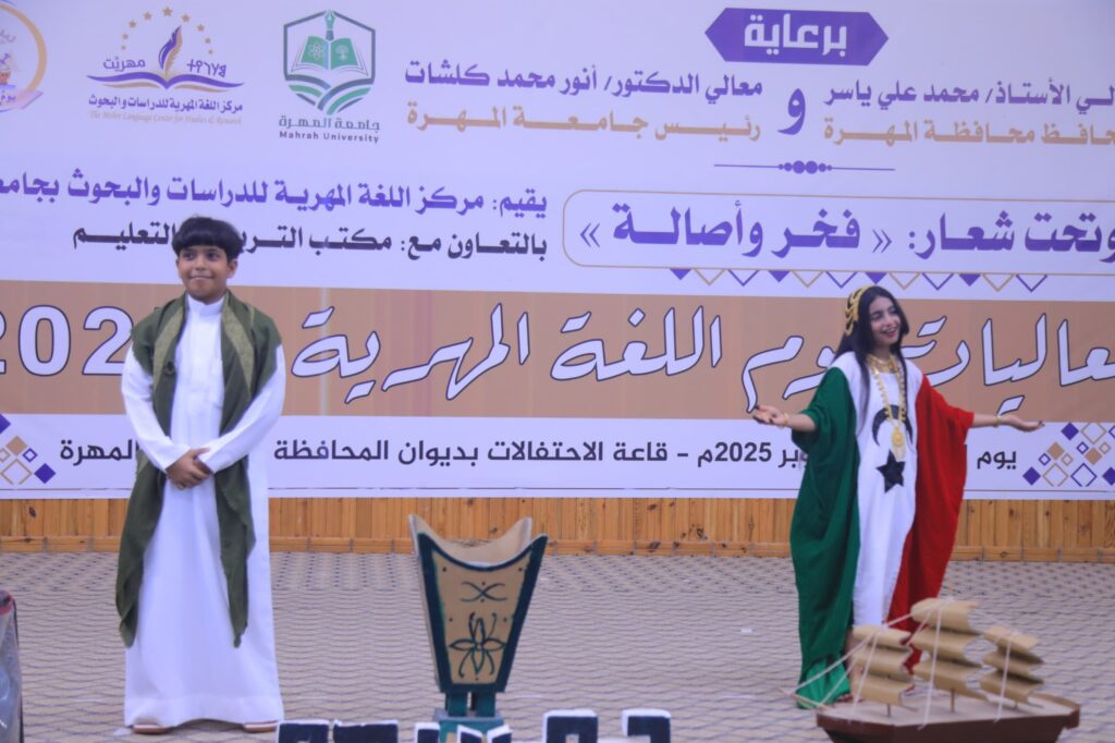 تخلّل الحفل فقرات إنشادية باللغة المهرية وقصائد شعرية عبرت عن الفخر بالانتماء اللغوي والتراثي، إلى جانب عرضٍ مرئي تناول مشروع توثيق المخطوطات والوثائق المهرية، الذي يهدف إلى جمعها وتصنيفها وإتاحتها للباحثين والمهتمين.